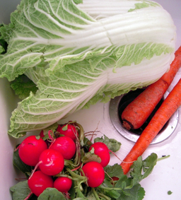 This meal contains: apples, goat cheese, walnuts, tahini (ground sesame seeds), carrots, kalamata olives, cucumber, cabbage, tomatoes, spinach, corn chips, leafy vegetables (red & green, red leaf, lollo rosa, tango, red chard, green chard, mizuna, arugula, mache, frisee, radicchio ... View Video